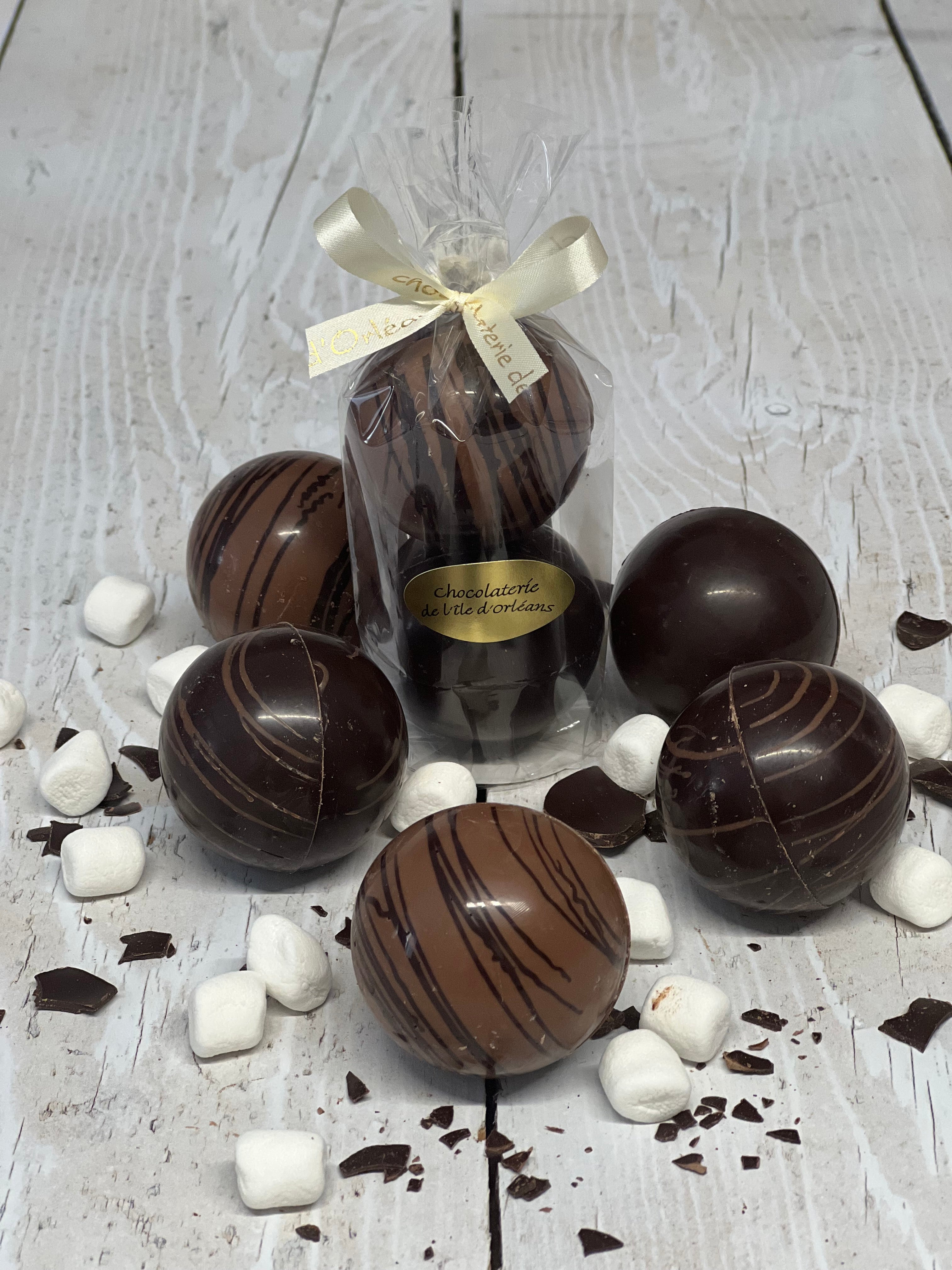 Boules de chocolat chaud avec guimauve maison 75g - lait - noir -