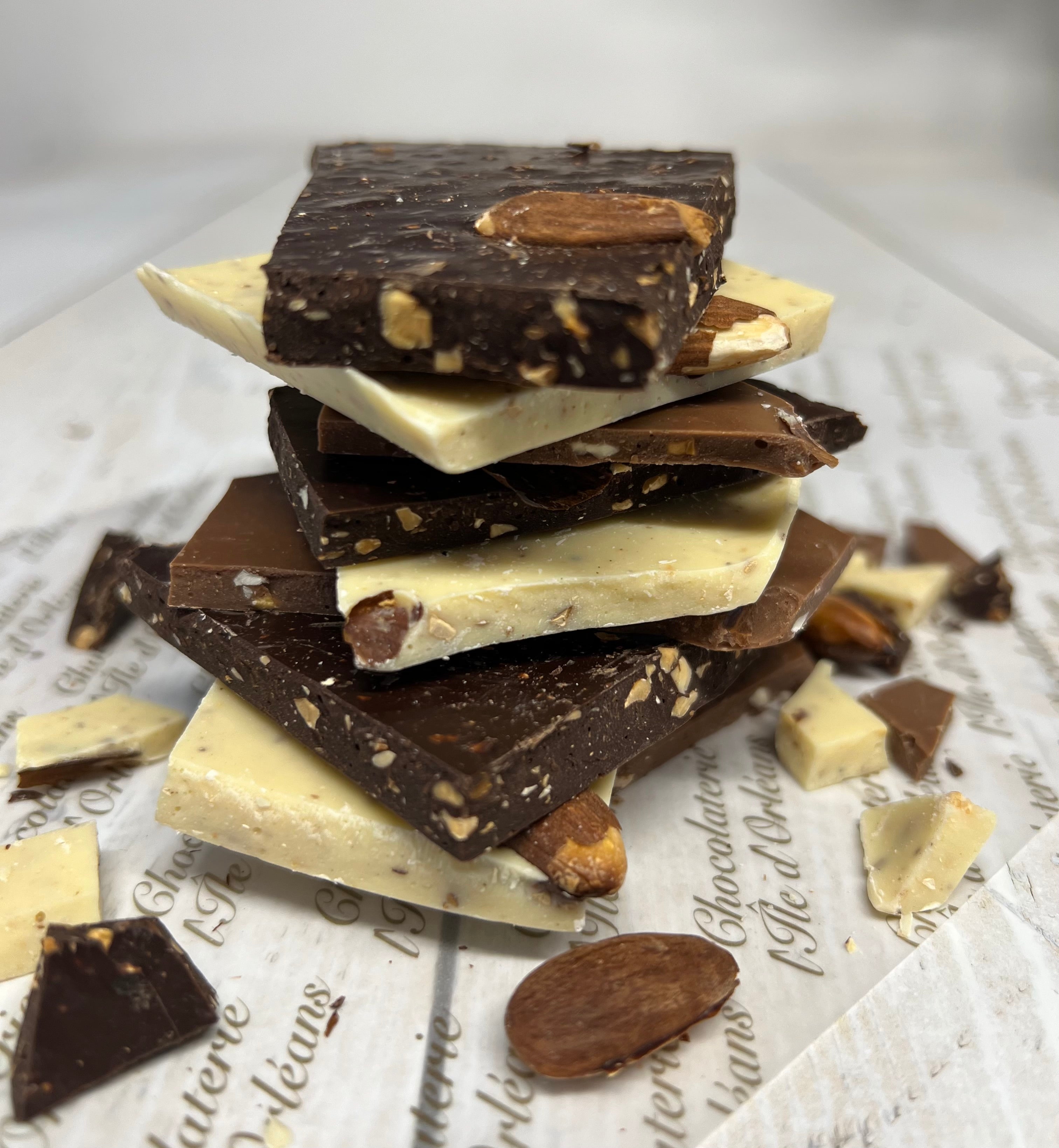 Écorces amandes chocolat lait ou chocolat noir - 200g -