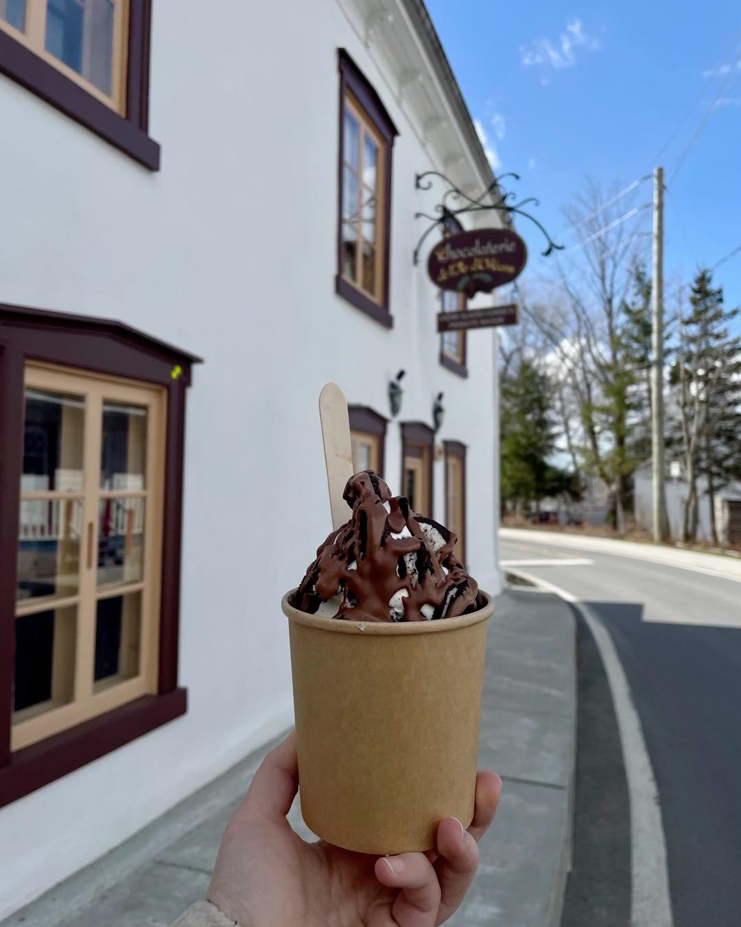 A gourmet destination on Île d'Orléans, renowned for its exquisite chocolate creations and a seasonal ice cream shop loved by all.